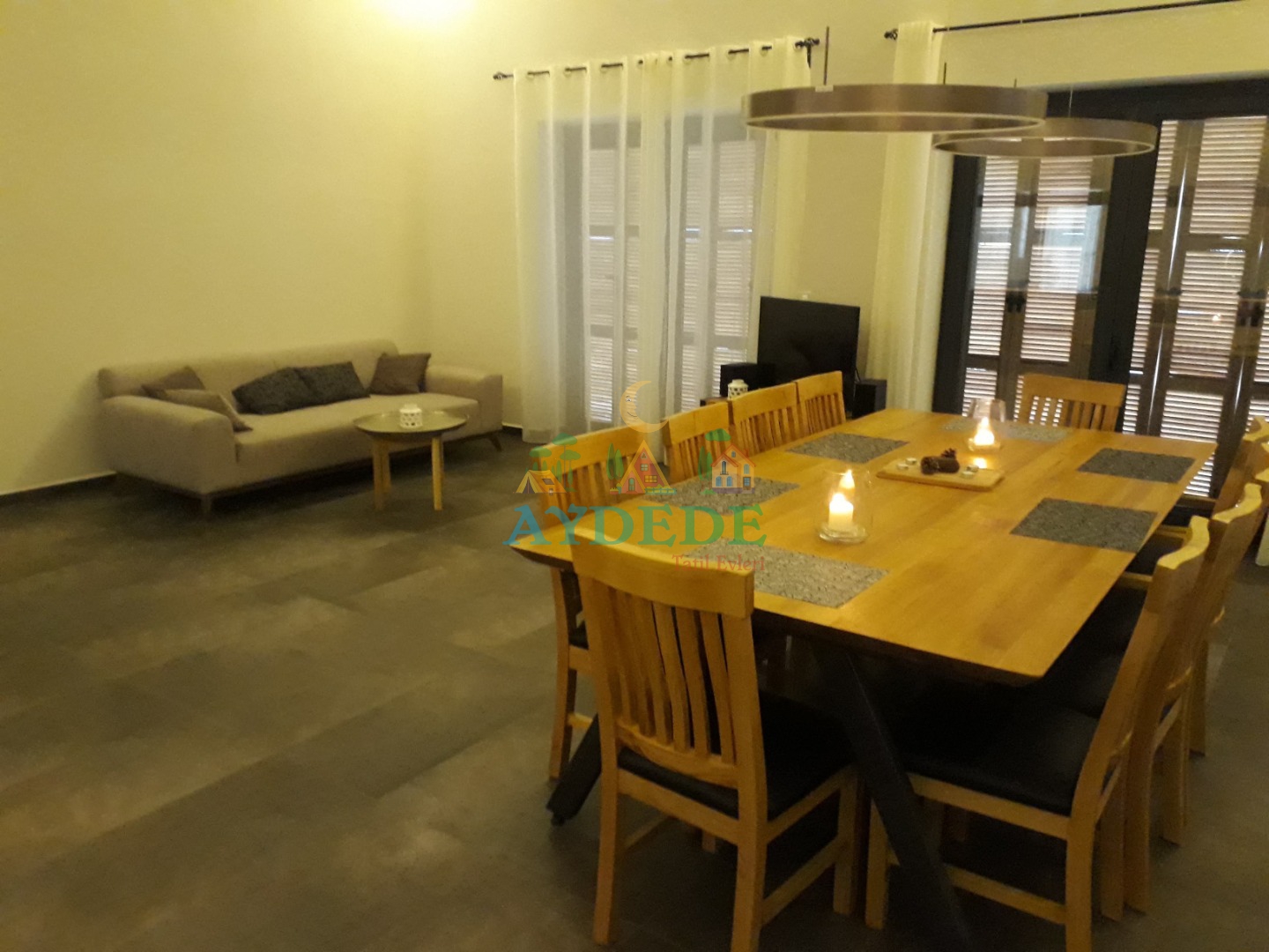 • Geniş oturma alanı, TV ve yemek masası