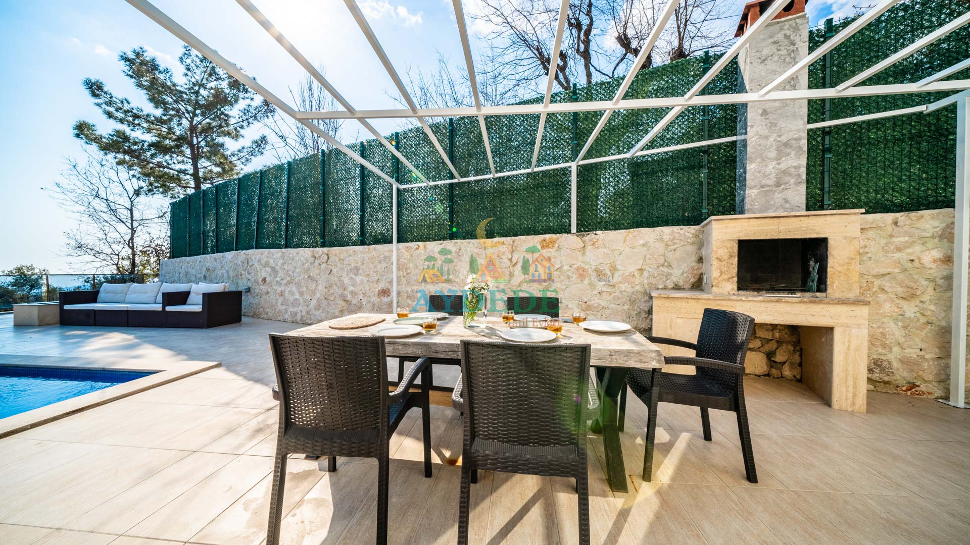 - Korunaklı havuz bahçe