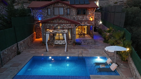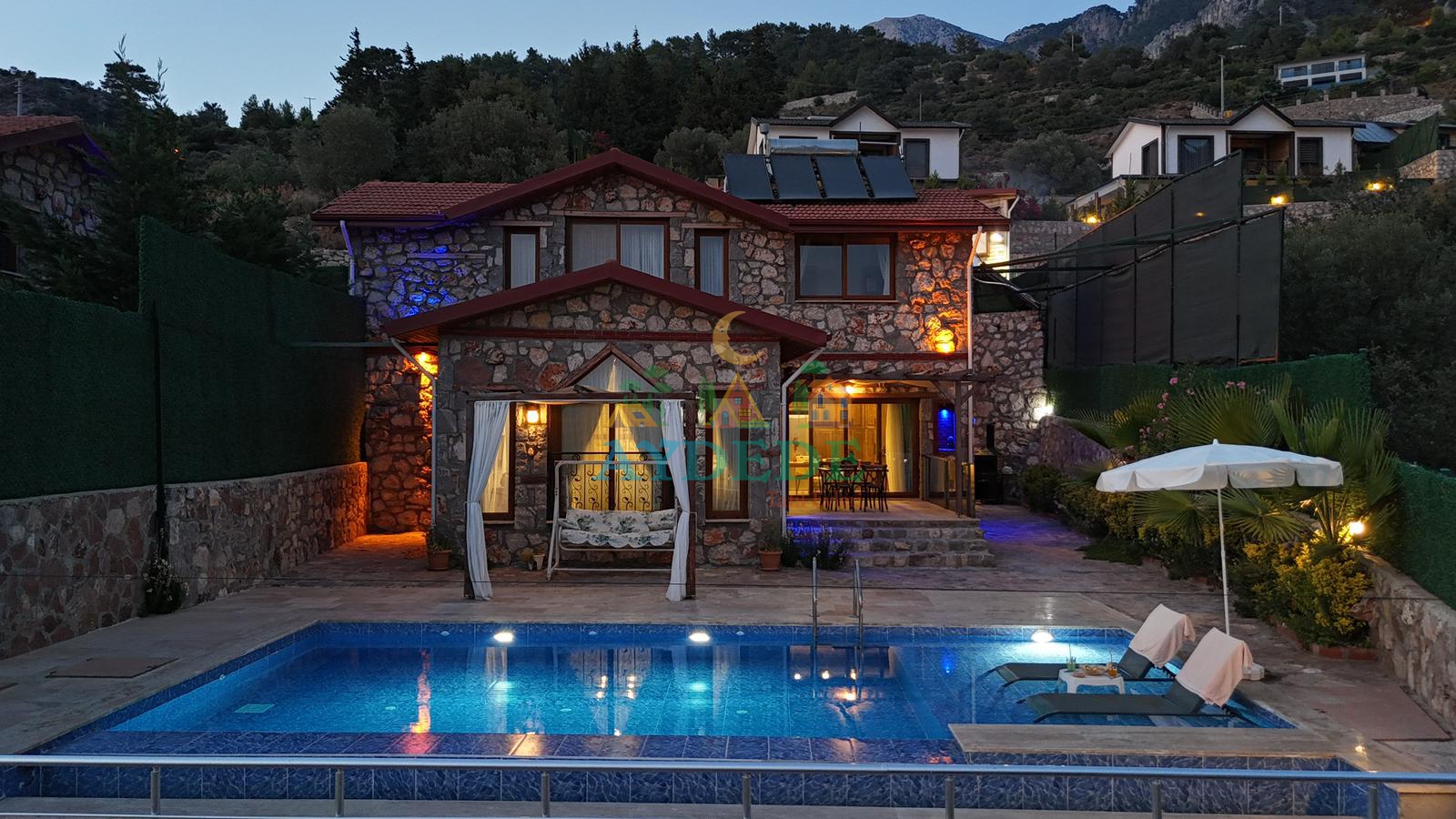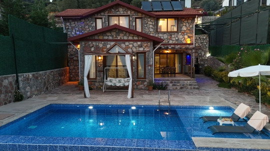 🏡 Villa Kevi 1 – Fethiye Faralya Kirme’de Jakuzili & Saunalı 1+1 Dubleks Villa