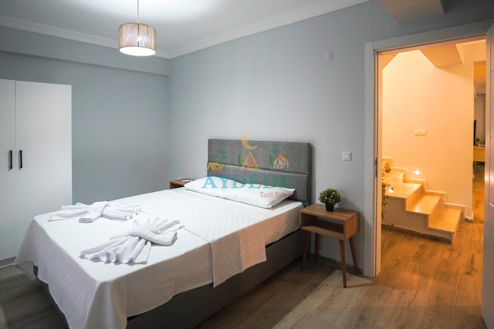 5. Yatak odası (üst kat): çift kişilik yatak klima