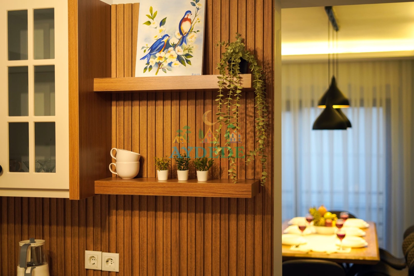 ▪Açık mutfaktır. Salonda , klima, Tv ,modern oturma grubu ,yemek masası bulunmaktadır.