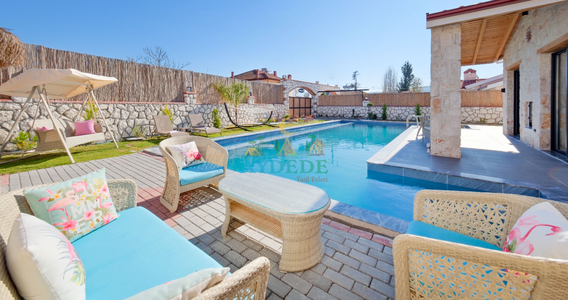 🏡 Villa Lina 2 – Seydikemer Zorlar Köyü’nde Kapalı Isıtmalı Havuzlu, Jakuzili ve Saunalı 2+1 Müstakil Villa