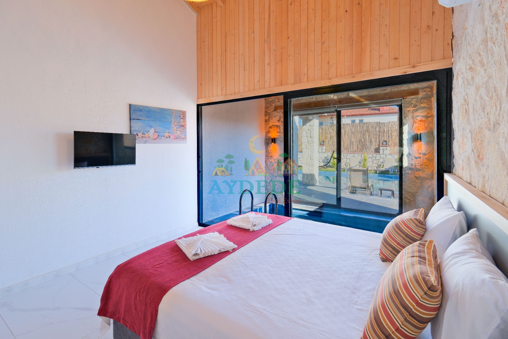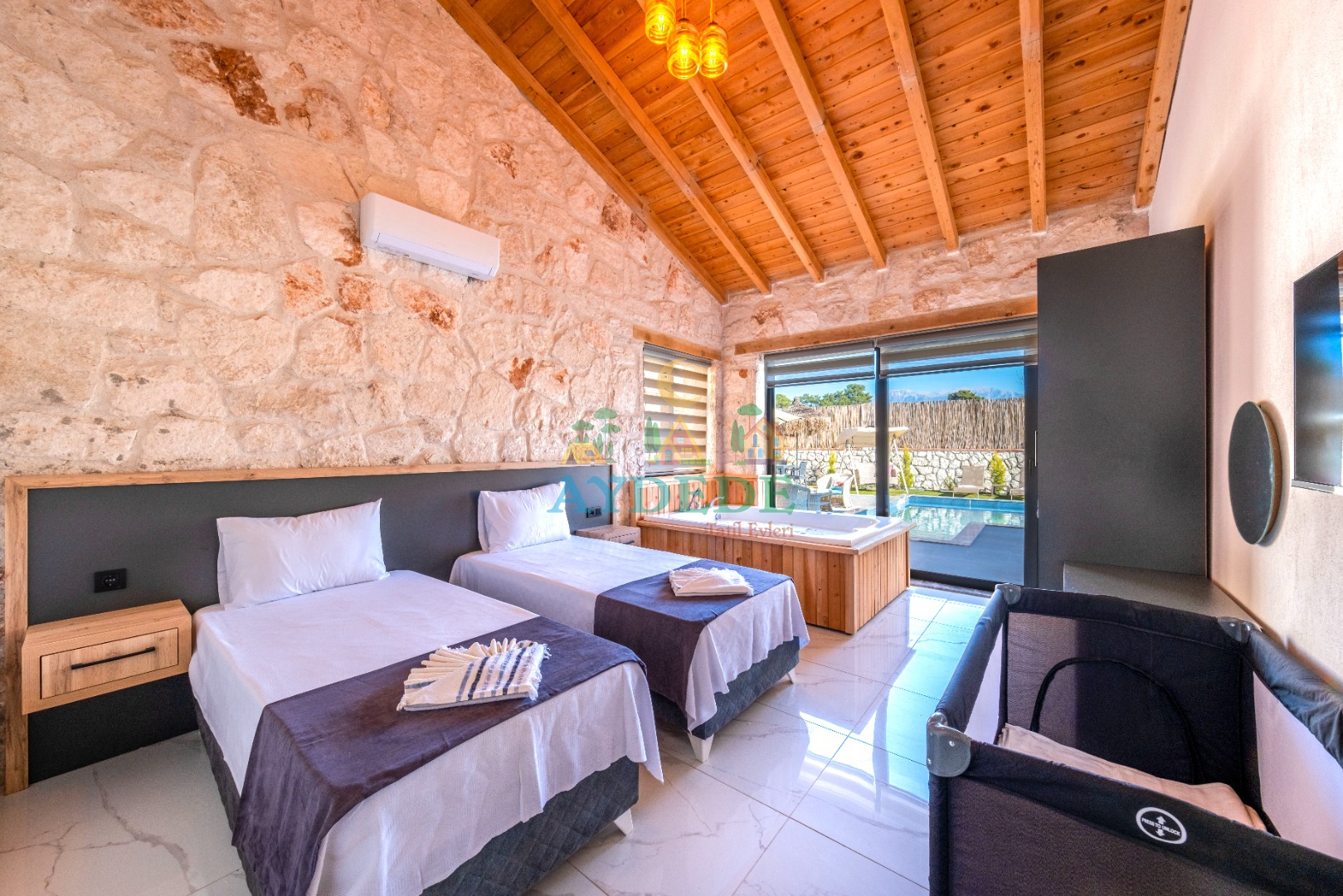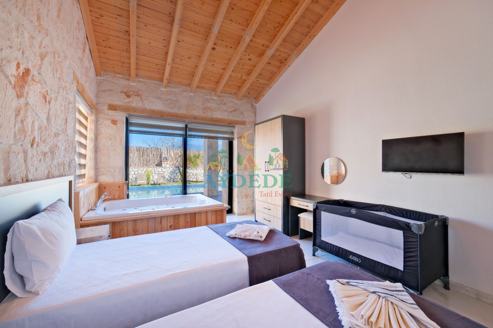 Çift kişilik yatak, ebeveyn banyo, klima, oda içerisinde kapalı ısıtmalı havuz
