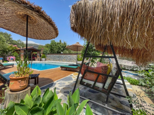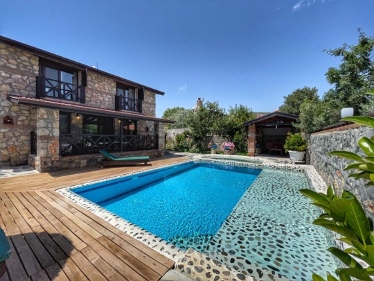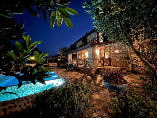 🏡 Villa Mecnun | Fethiye Kayaköy’de Özel Havuzlu, Açık Hava Jakuzili, Geniş Bahçeli 2+1 Taş Villa