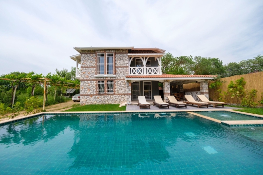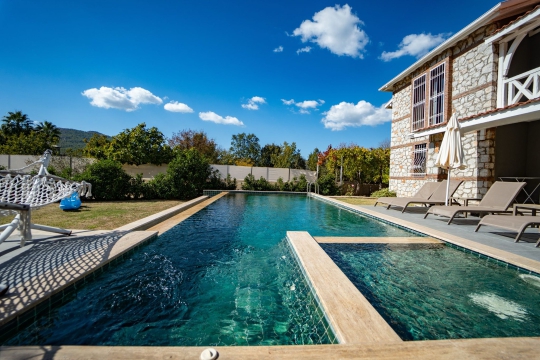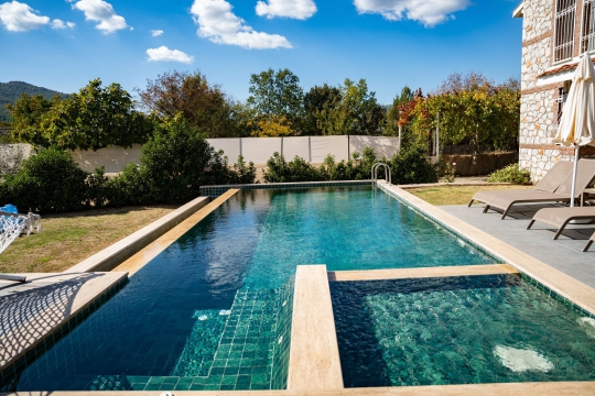Villa Mira, Fethiye’nin tarihi ve doğasıyla öne çıkan Kayaköy bölgesinde konumlanan; çocuk havuzu, jakuzili ana havuzu, tam korunaklı yapısı ve yemyeşil bahçesiyle özellikle çocuklu aileler ve muhafazakâr aileler için ideal bir tatil villasıdır.