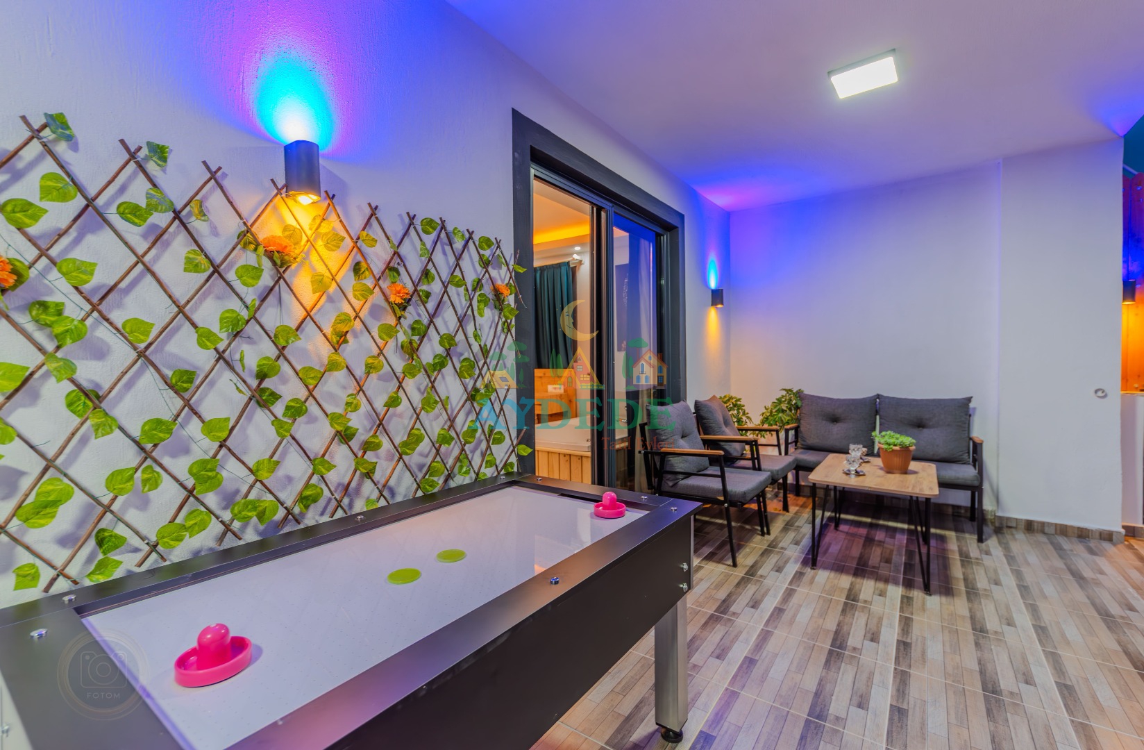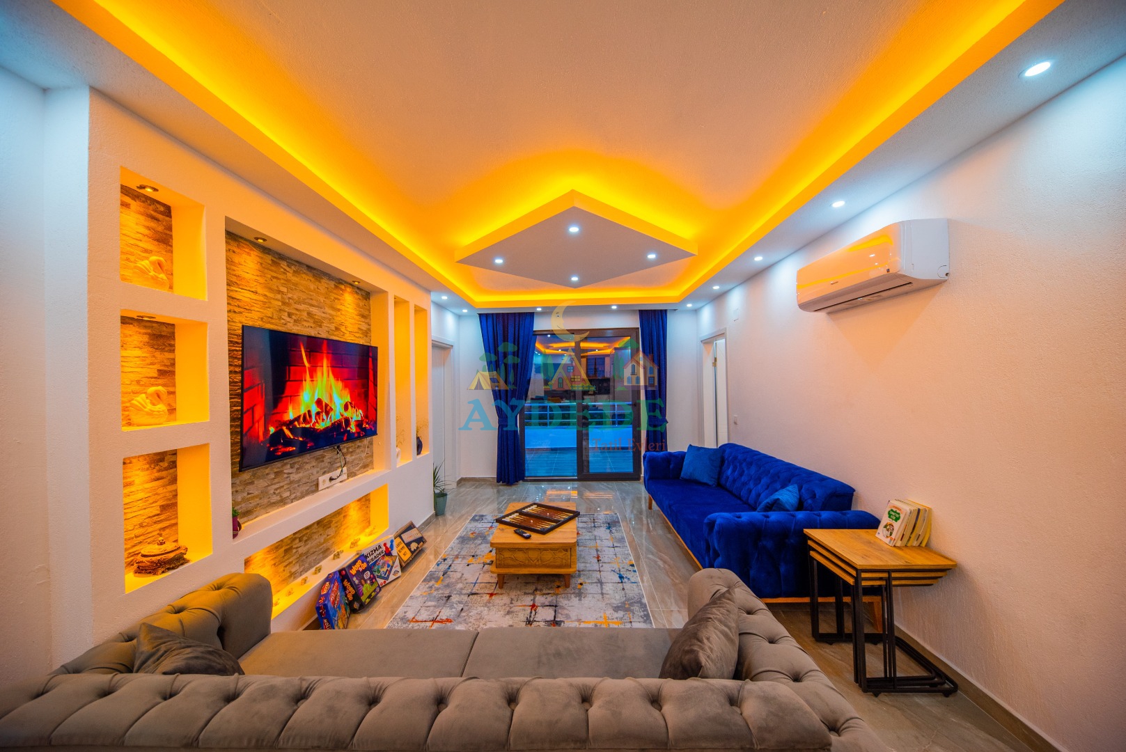• Salon içerisinde oturma grubu, TV, klima ve yemek alanı bulunmaktadır