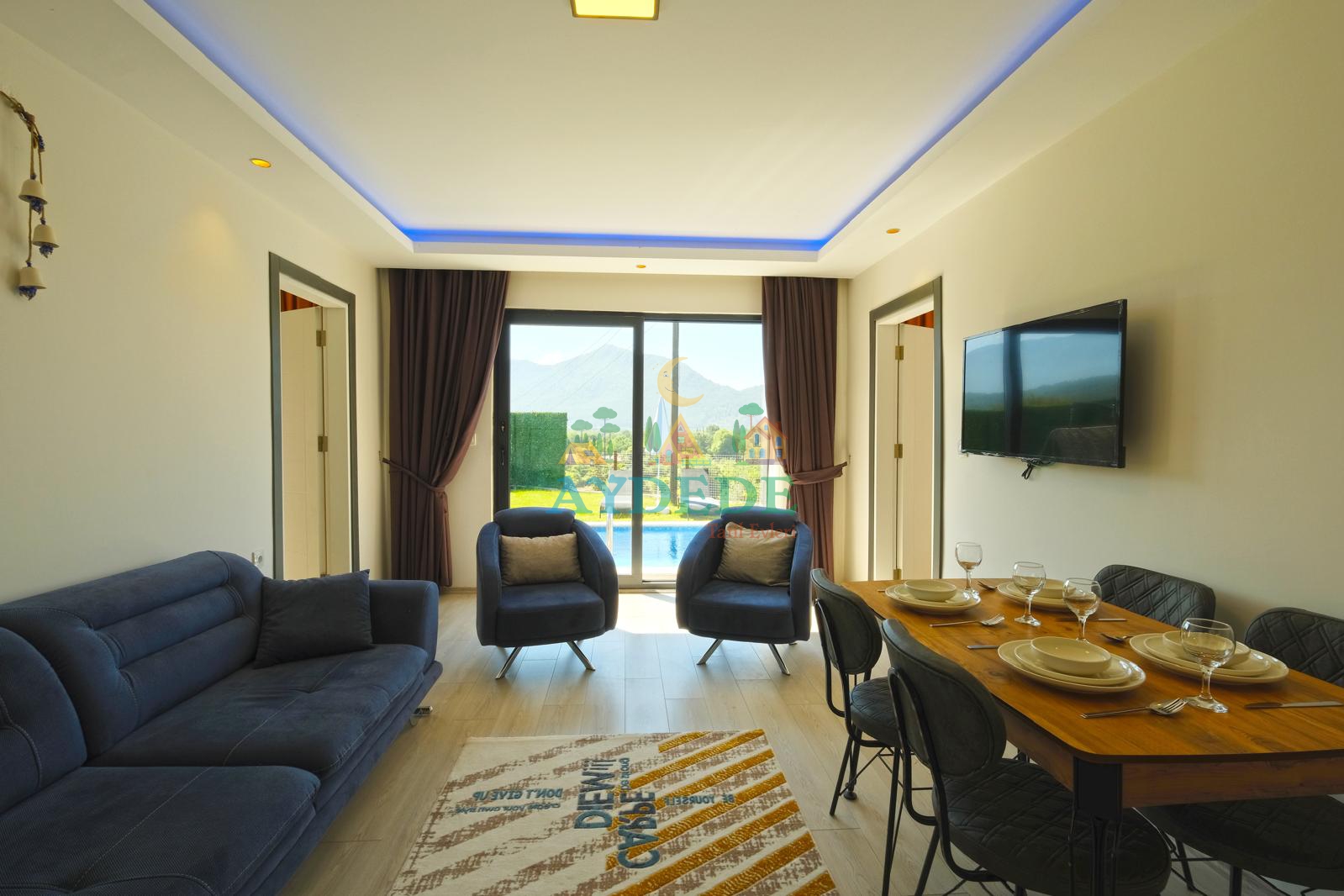• Salonda oturma grubu, TV, yemek alanı