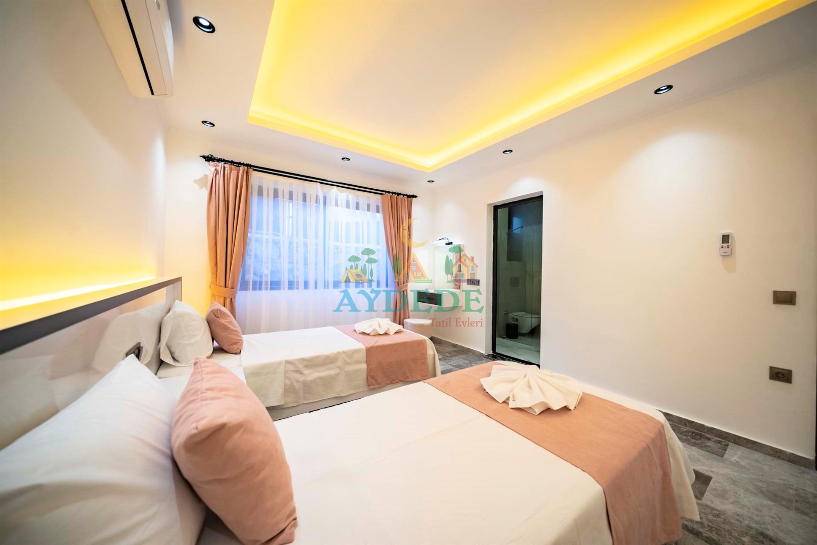2 adet tek kişilik yatak, klima, ebeveyn banyosu