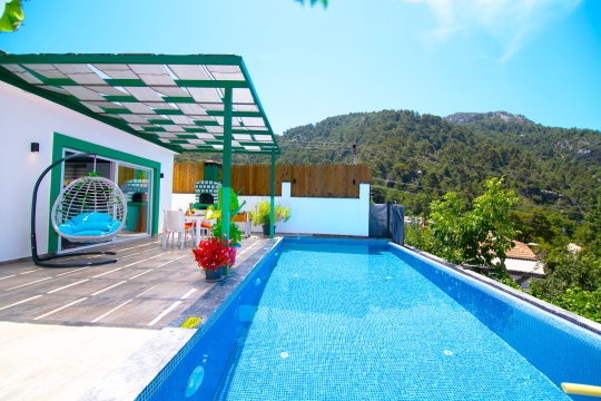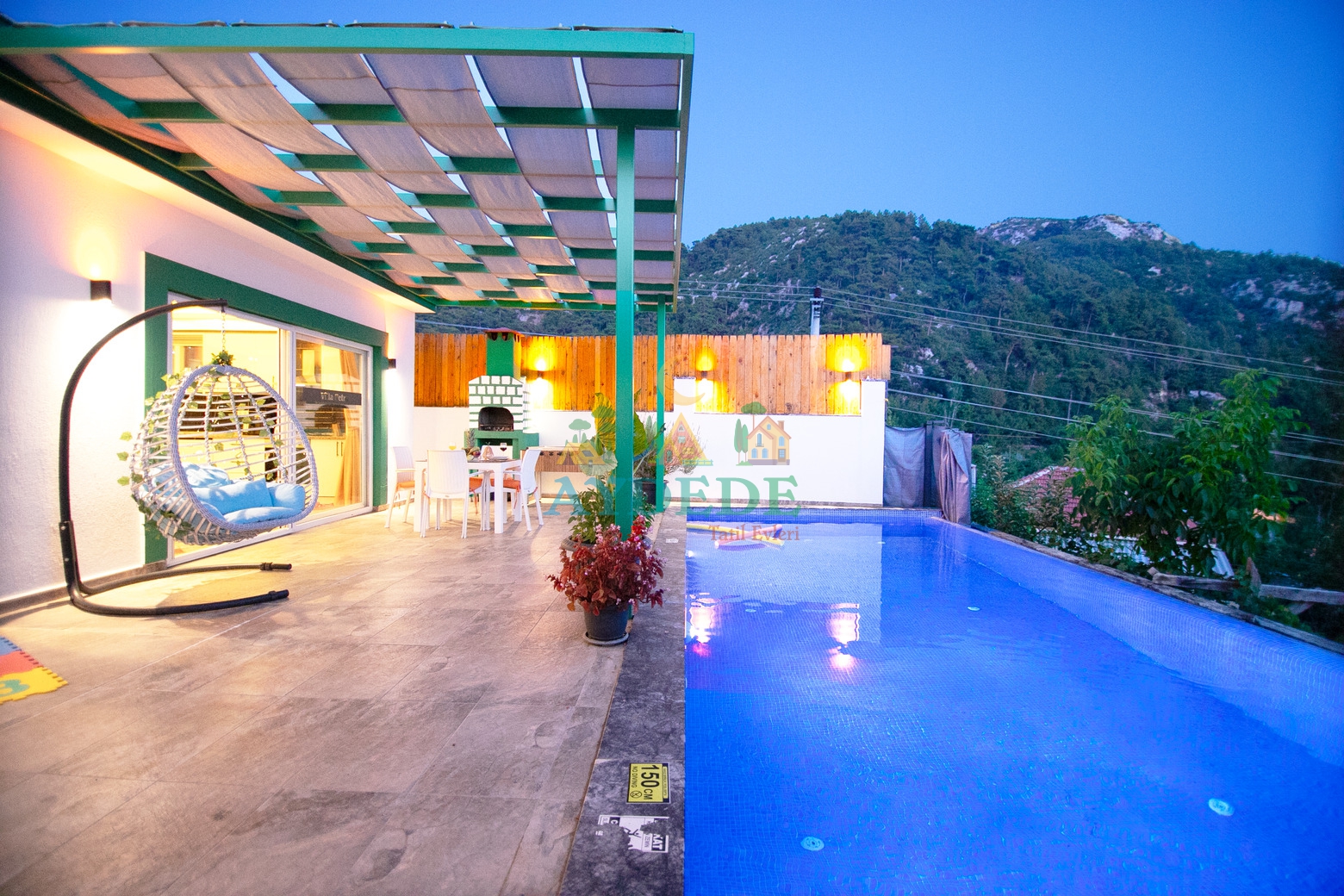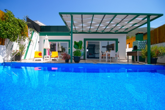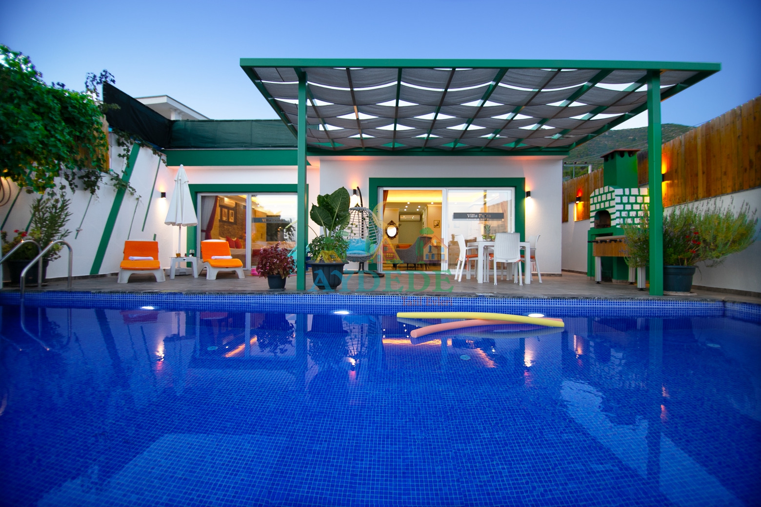Kalkan’ın doğayla iç içe ve huzurlu bölgelerinden İslamlar mevkiinde konumlanan Villa Plüton; tam korunaklı özel havuzu, jakuzili yatak odası ve saunalı yapısıyla özellikle balayı çiftleri için tasarlanmış konforlu bir tatil villasıdır. Yeşillikler içerisindeki sakin atmosferi sayesinde şehir gürültüsünden uzak, romantik ve keyifli bir tatil deneyimi sunmaktadır.