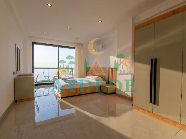 Çift kişilik yatak, klima, komodin, elbise dolabı, makyaj masası, banyo & WC, balkon (deniz manzaralı)