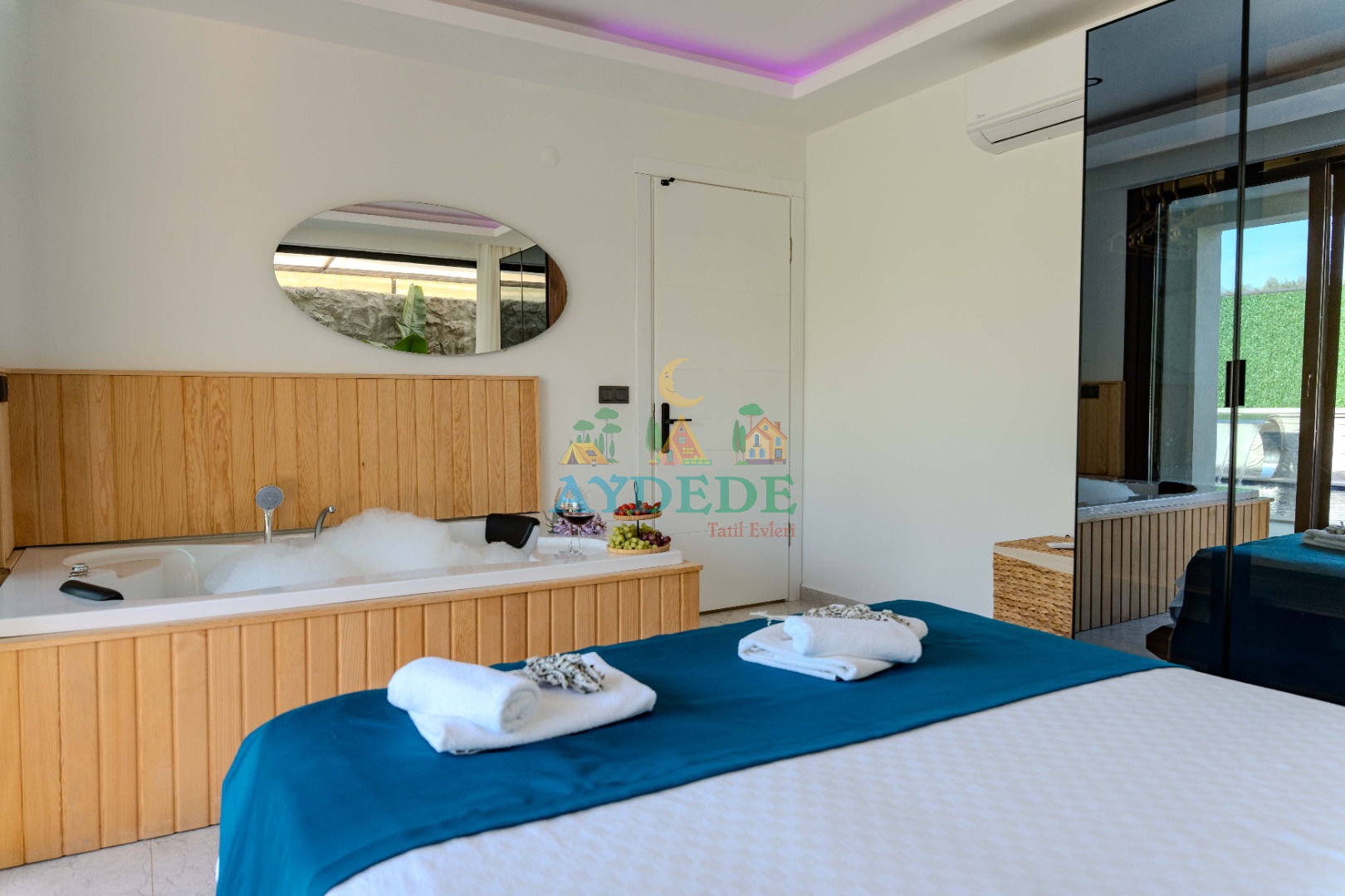 Çift kişilik yatak, klima, ebeveyn banyo