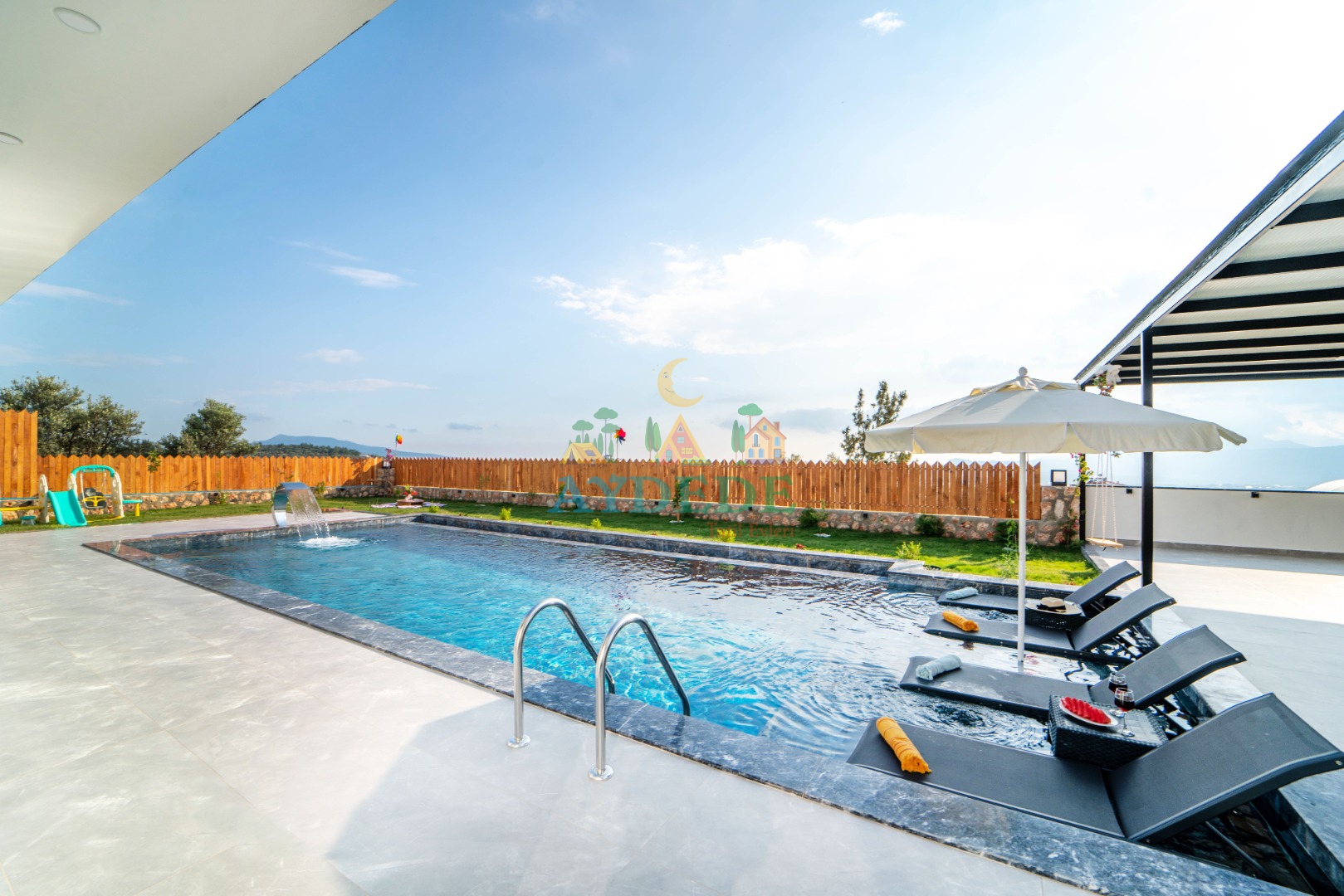 - Korunaklı havuz bahçe