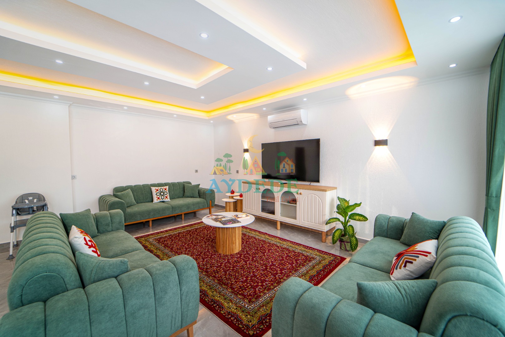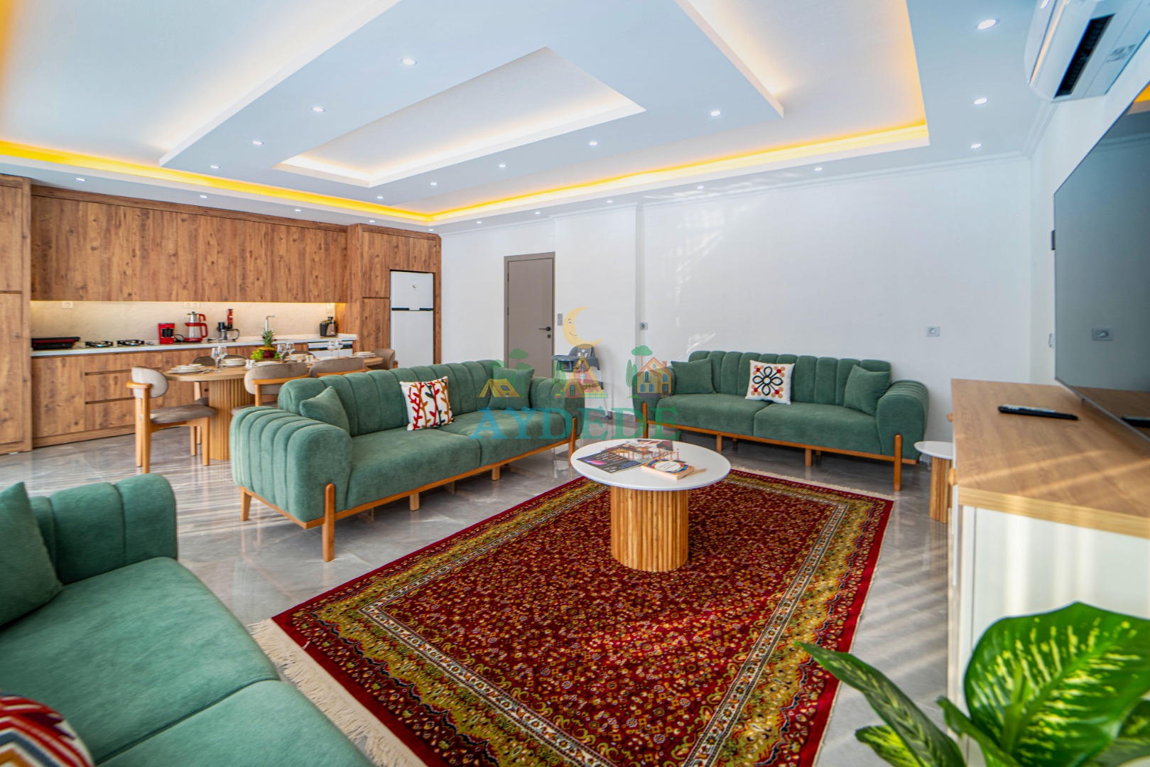 • TV, oturma grubu ve yemek masası