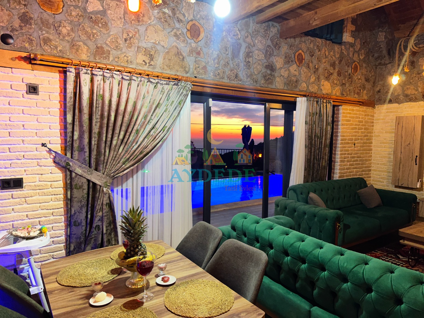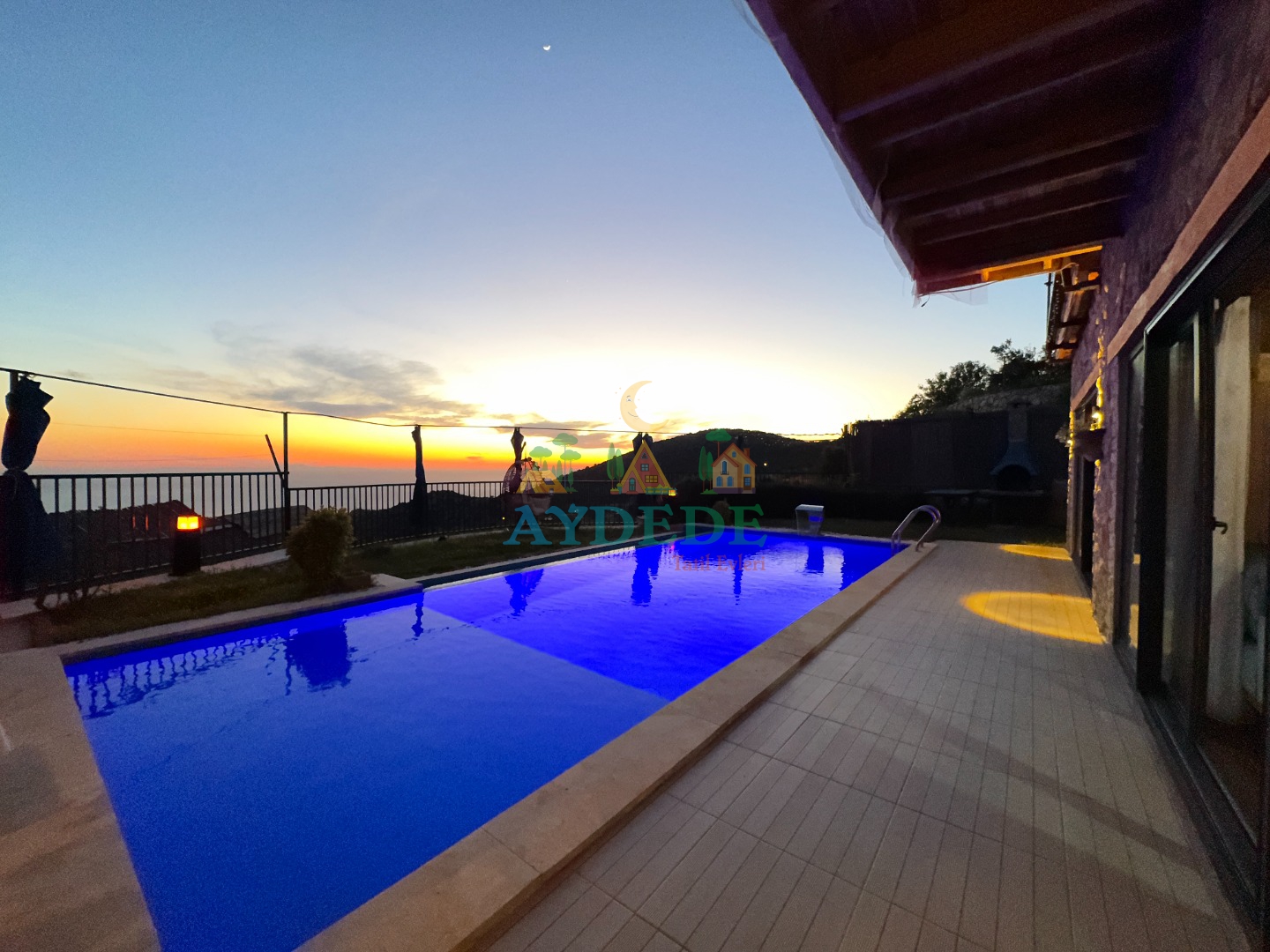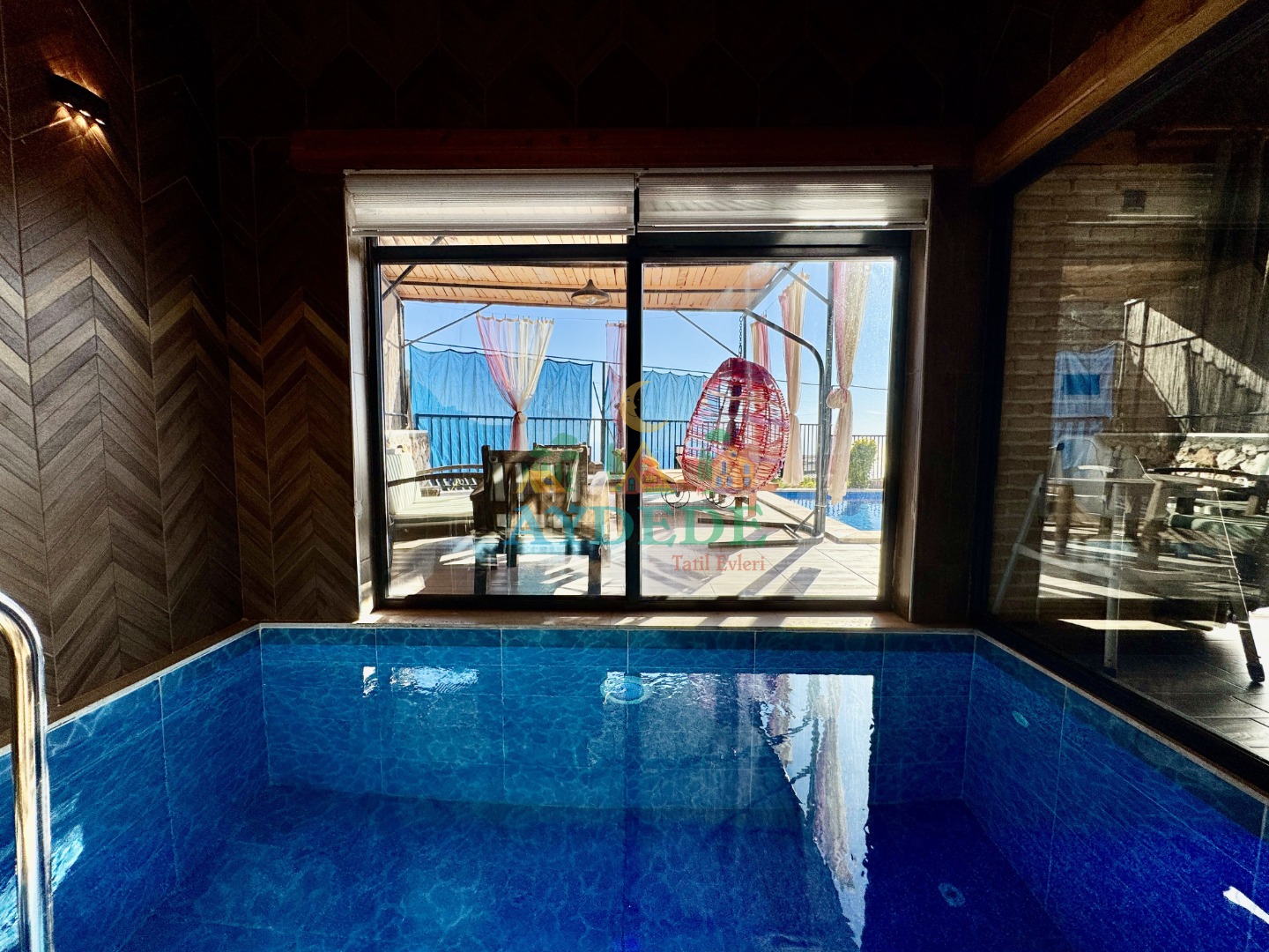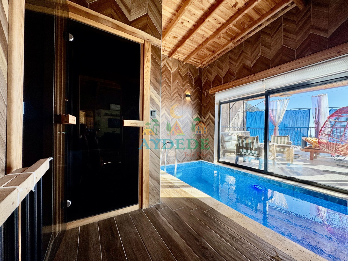 🏡 Villa Sunset | Fethiye Faralya Kirme’de Deniz Manzaralı, Kapalı Isıtmalı Havuzlu, Hamam, Sauna ve Jakuzili 1+1 Lüks Villa