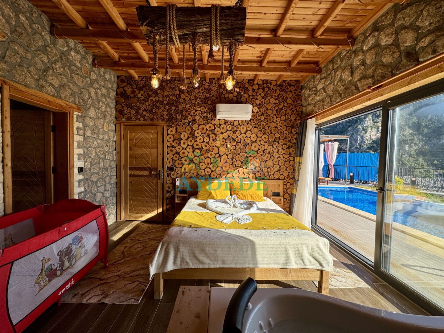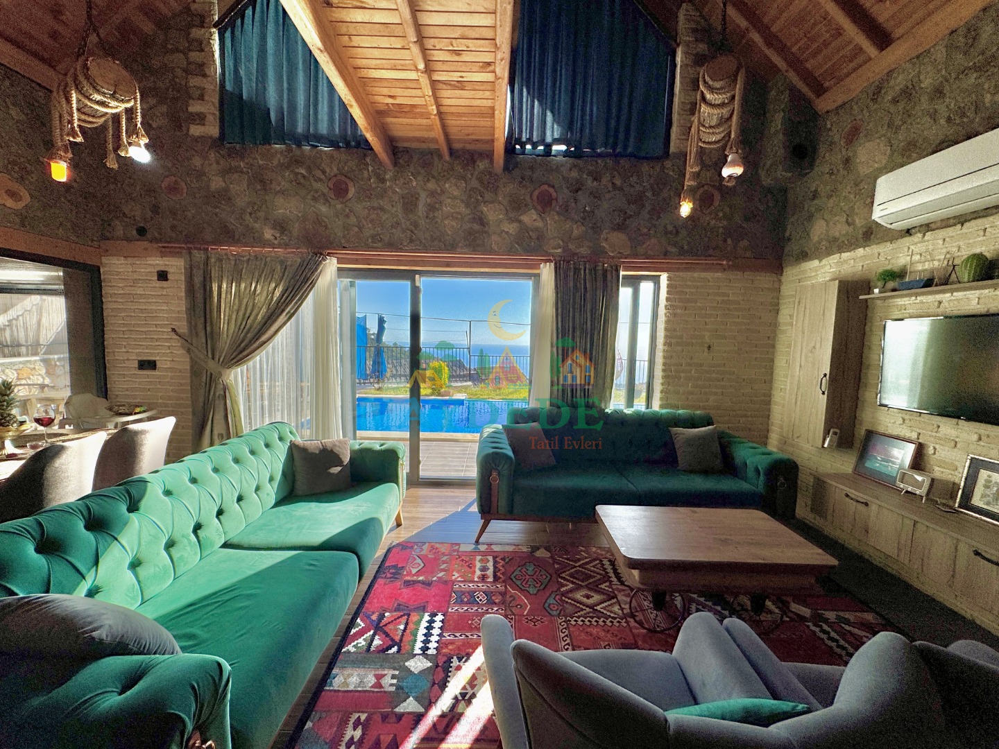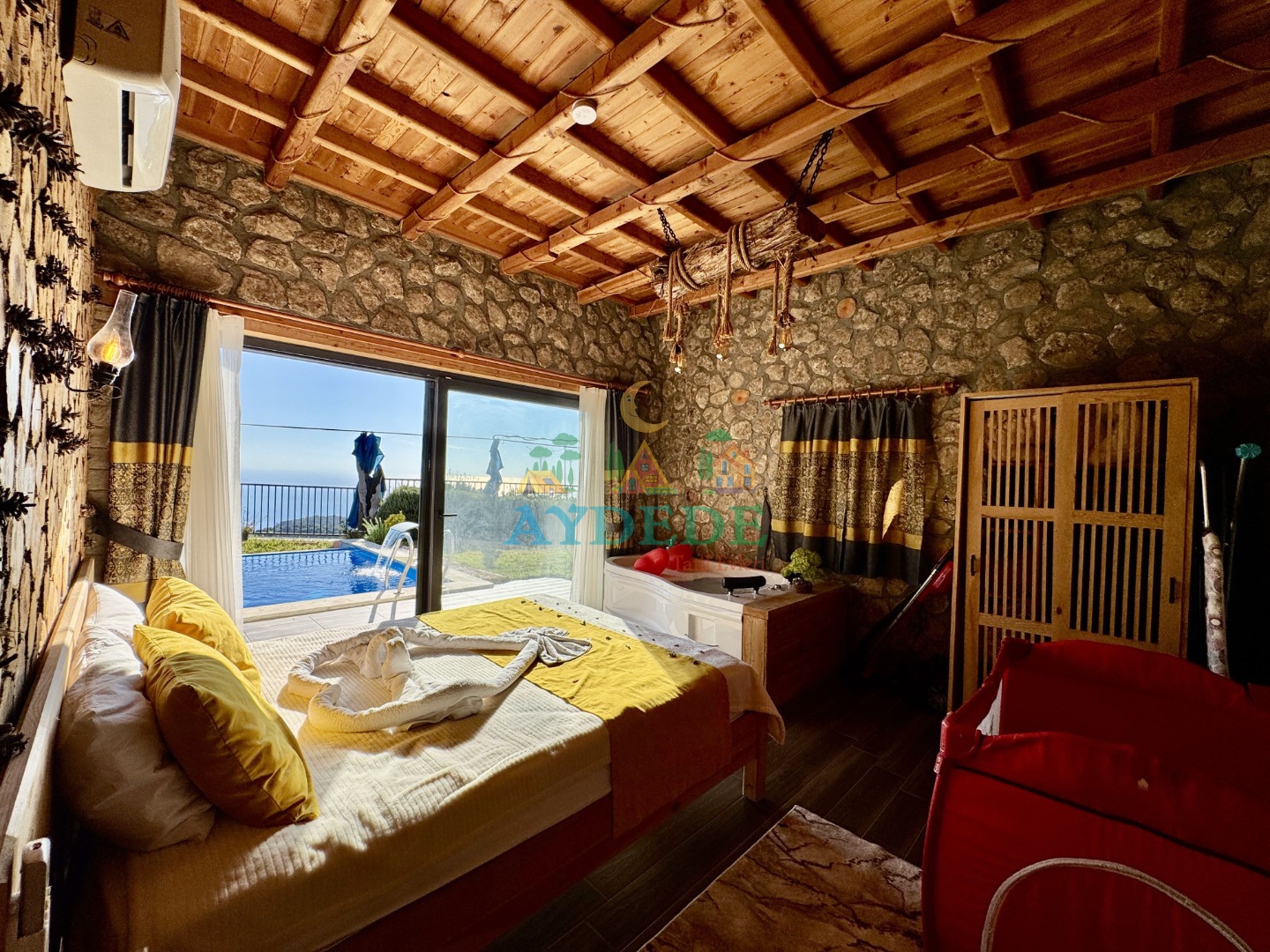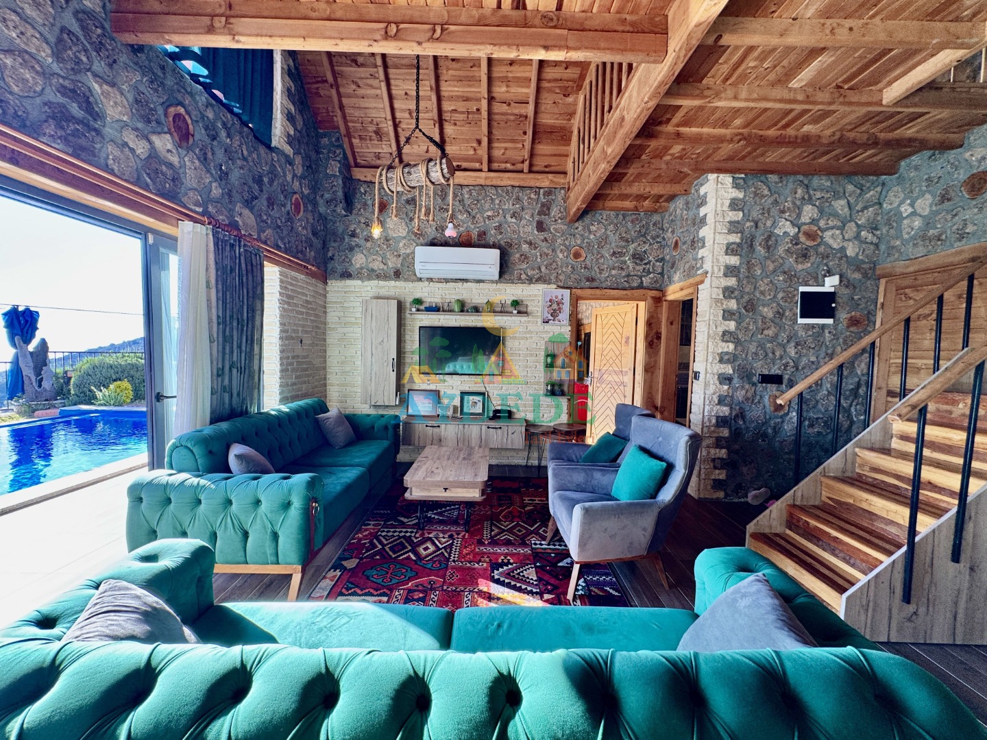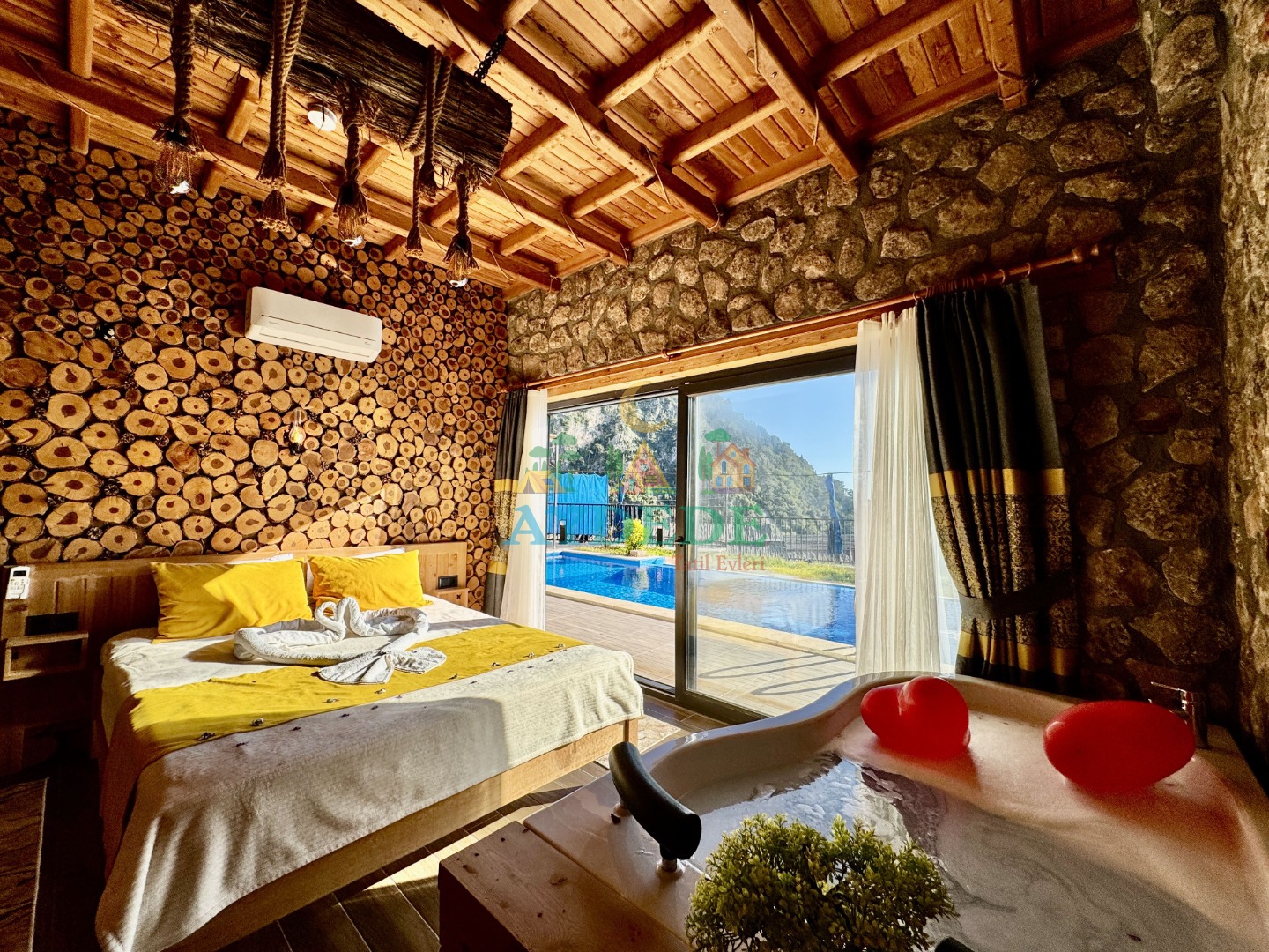 🏡 Villa Sunset | Fethiye Faralya Kirme’de Deniz Manzaralı, Kapalı Isıtmalı Havuzlu, Hamam, Sauna ve Jakuzili 1+1 Lüks Villa