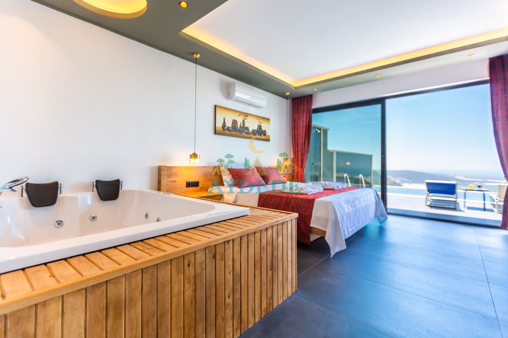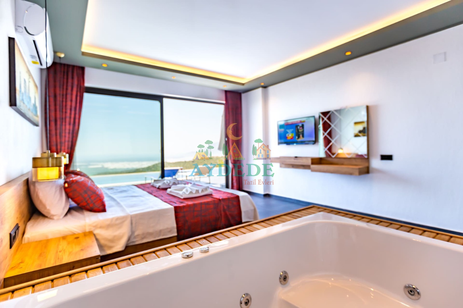 Çift kişilik yatak, jakuzi, TV, klima, ebeveyn banyo