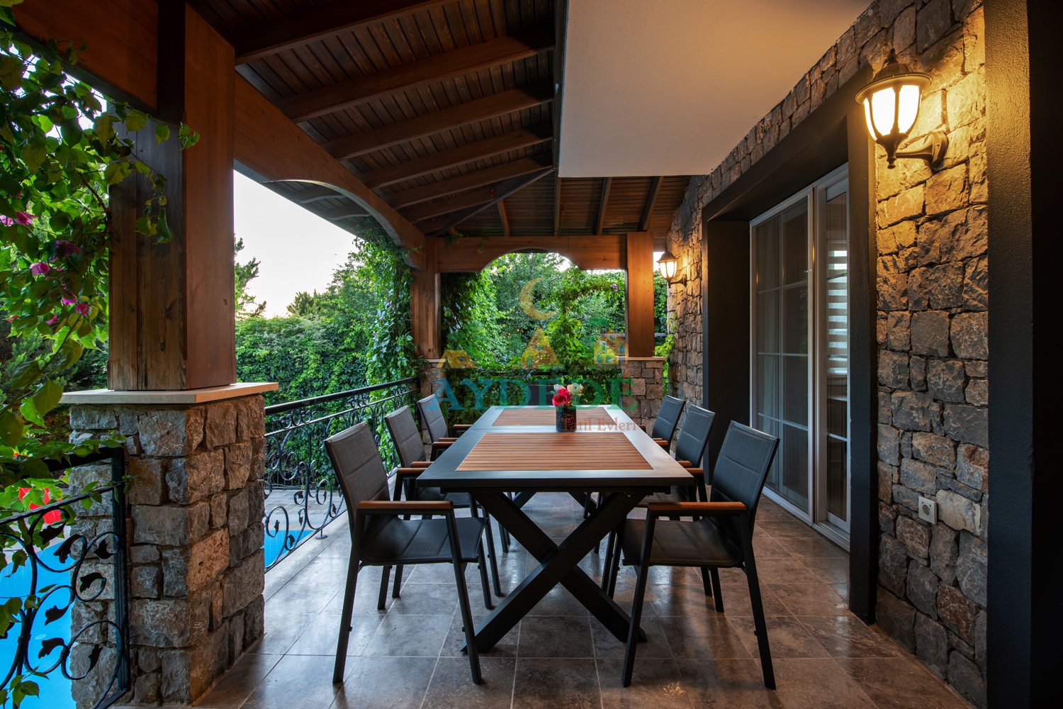 • Geniş bahçe alanı ve korunaklı havuz terası