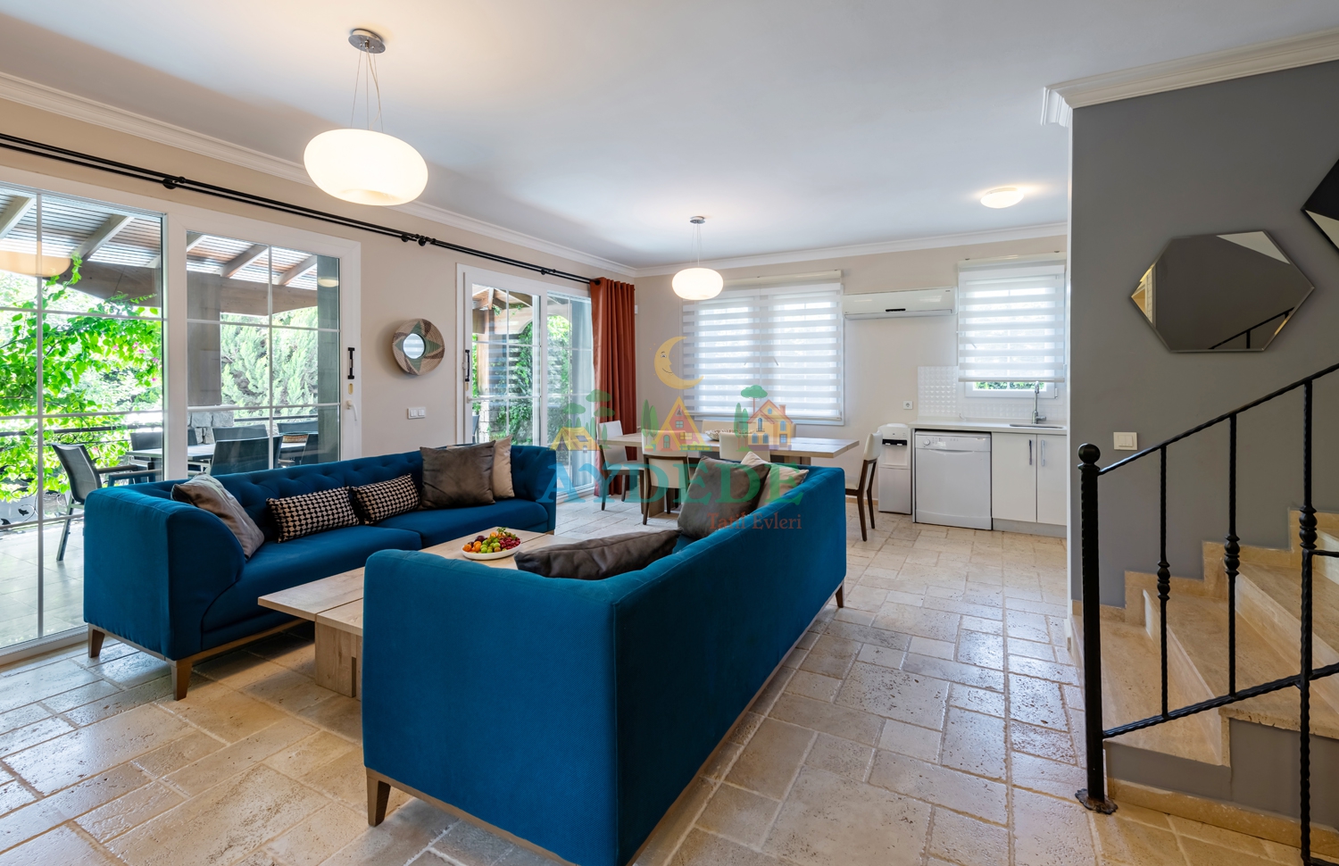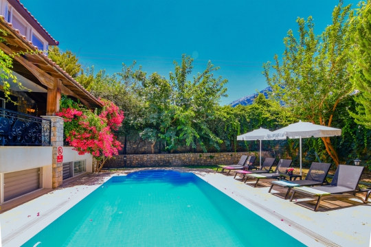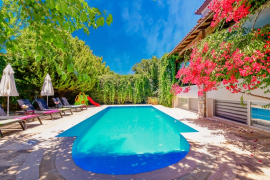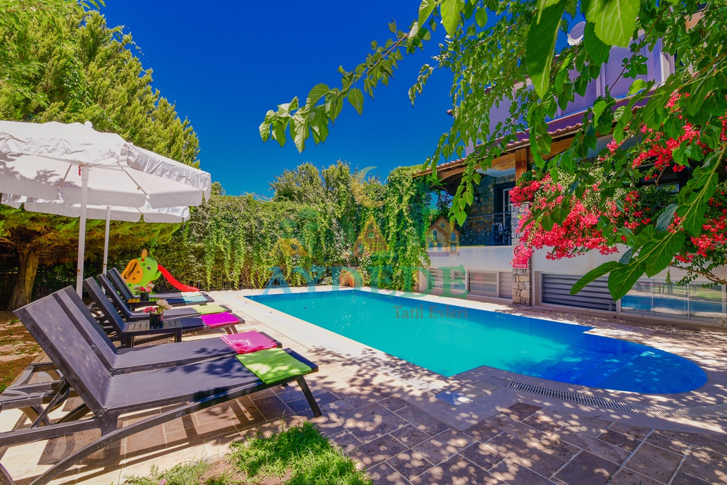 Fethiye’nin en sevilen tatil bölgelerinden Ölüdeniz Ovacık’ta yer alan Villa Venüs 2; doğayla iç içe konumu, huzurlu atmosferi ve konforlu yaşam alanlarıyla unutulmaz bir tatil deneyimi sunmaktadır. Şık ve kaliteli eşyalarla donatılmış olan villamız, kalabalık aileler ve arkadaş grupları için ideal bir konaklama imkânı sağlar. Elit bir site içerisinde bulunan ve toplam 4 müstakil villadan biri olan Villa Venüs 2, tamamen korunaklı ve ısıtmalı özel havuzu sayesinde özellikle muhafazakar aileler için uygun bir seçenektir. 5 yatak odası ve 14 kişilik konaklama kapasitesiyle hem konforu hem de mahremiyeti bir arada sunarak keyifli bir tatil atmosferi oluşturur.