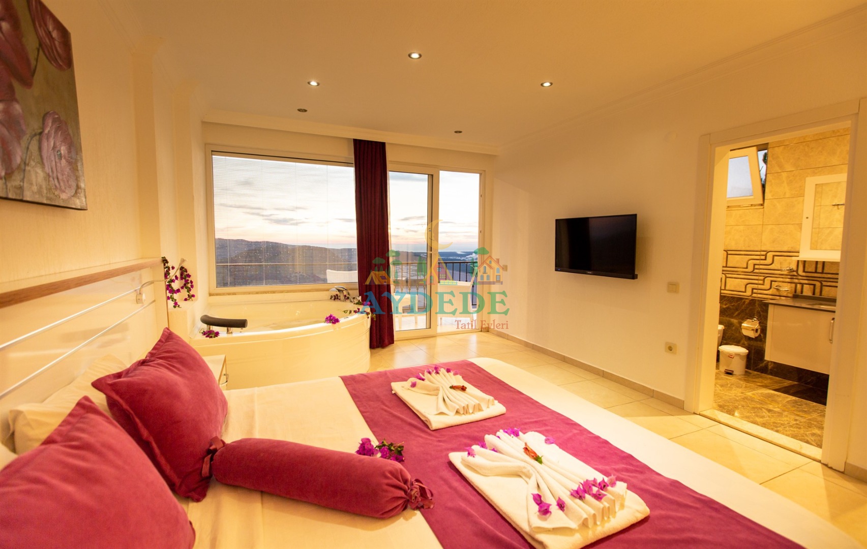 Çift kişilik yatak, jakuzi, klima, TV, ebeveyn banyo