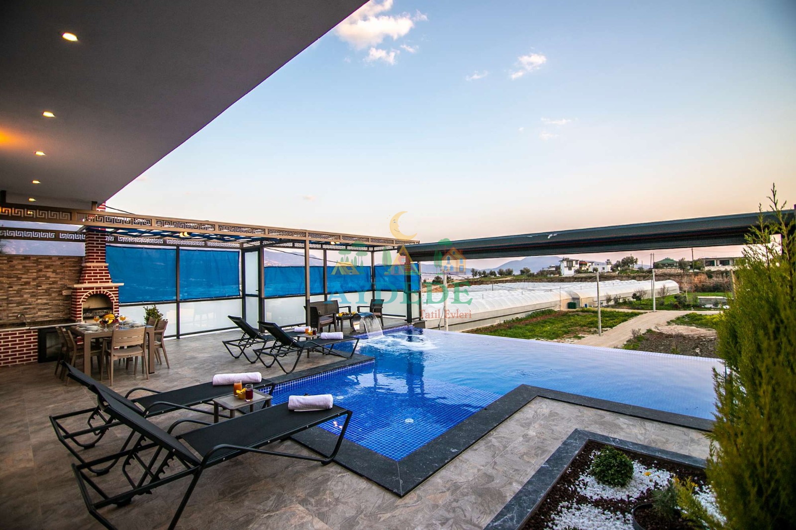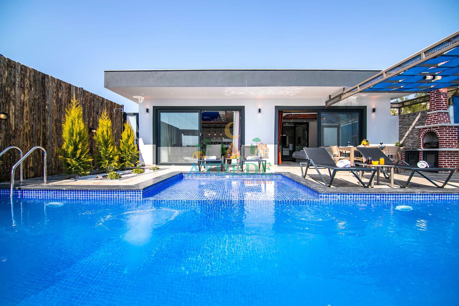• Tam korunaklı özel havuz ve bahçe alanına sahiptir