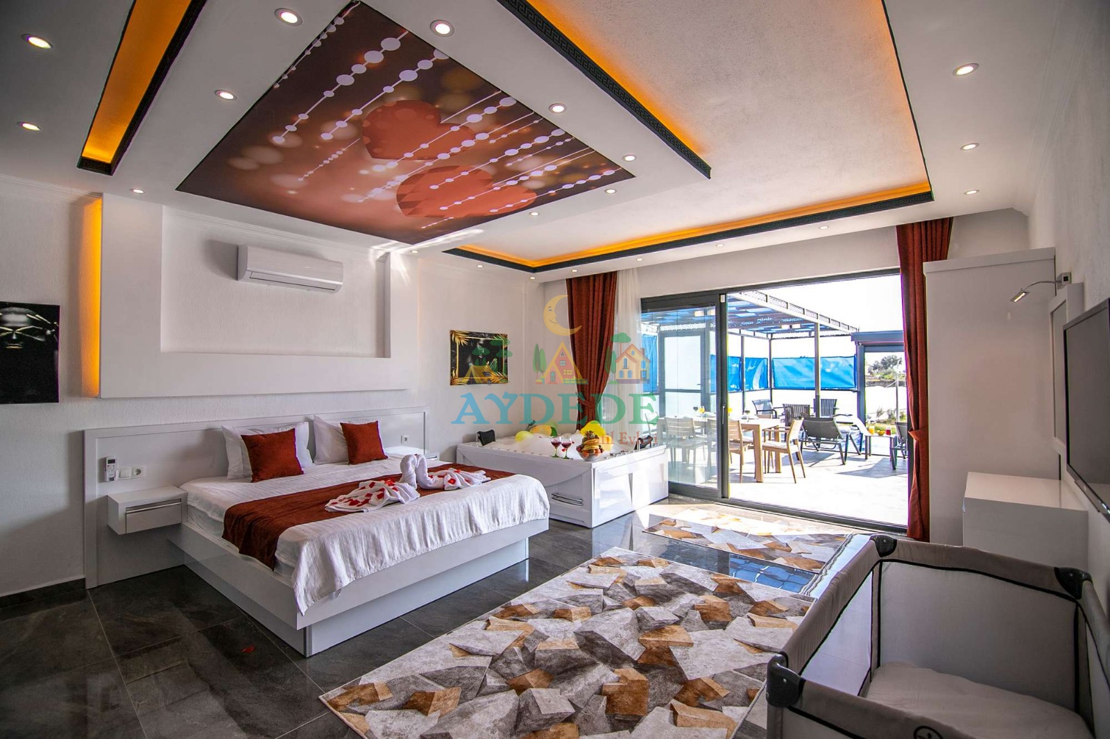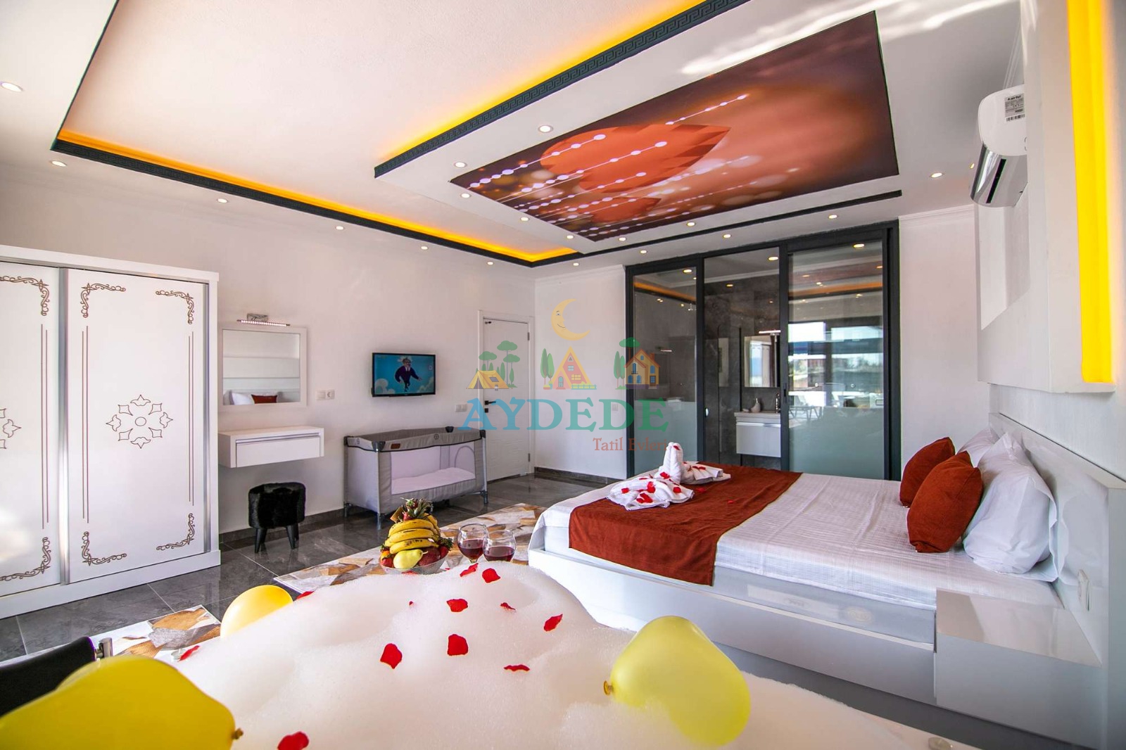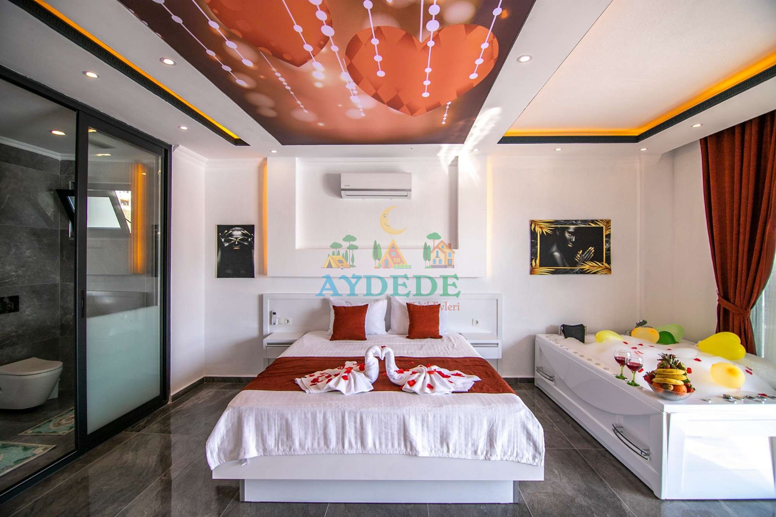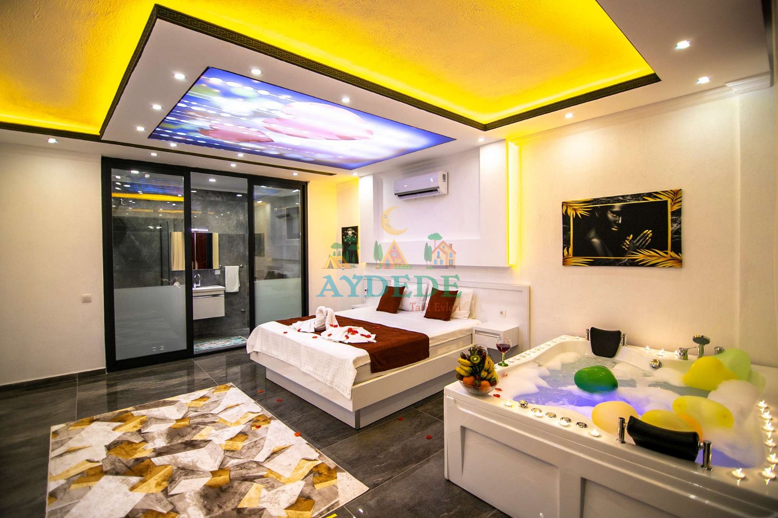 Çift kişilik yatak, klima, jakuzi, ebeveyn banyo