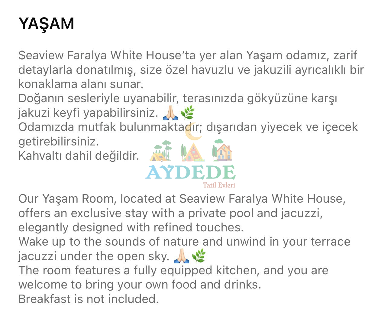 Detaylı bilgi için konaklamak istediğiniz tarihleri bizimle paylaşabilirsiniz.🙏🏻
