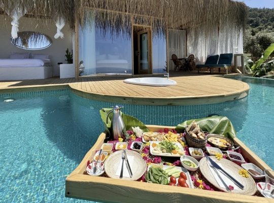 💜Balayı çiftlerimize özel 1 defalık yüzen tepside havuz kahvaltısı ikram ediyoruz🌿